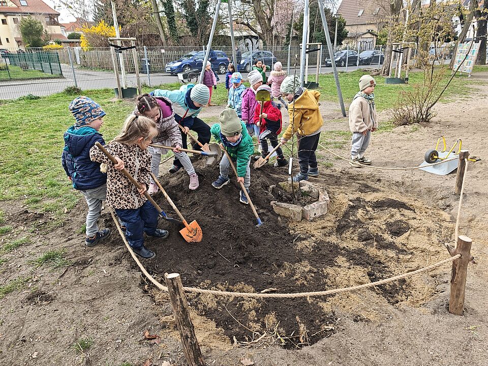Gemeinsam entdecken wir die Vielfalt der Umwelt, lernen achtsam mit ihr umzugehen und übernehmen Verantwortung für unsere Zukunft. Durch Projekte wie das Schaffen neuer Lebensräume für Insekten oder das Pflanzen eines Apfelbaumes erleben die Kinder ganz praktisch, wie wichtig ihr eigenes Handeln ist.
