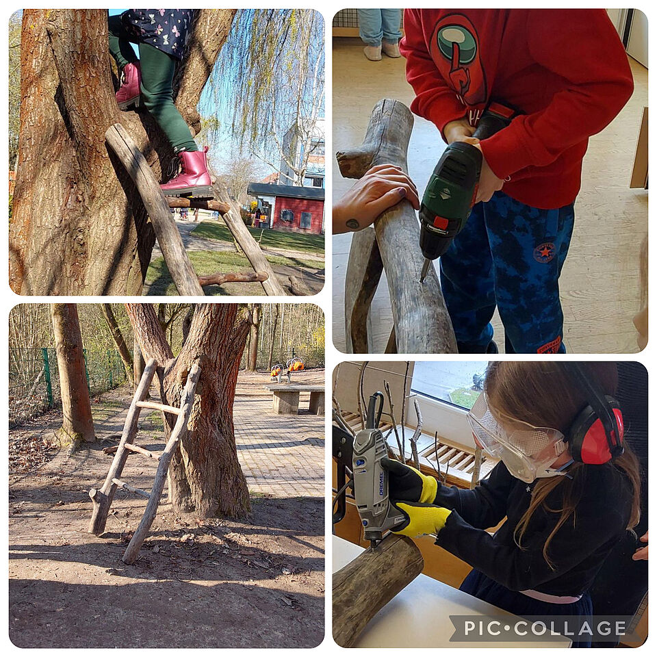 Heute wurden wir Zeugen eines wunderbaren Beispiels kindlicher Kreativität: Eine Gruppe neugieriger Kinder hat eine Leiter aus Holzmaterialien gebaut. Aus stabilen Holz- sowie Baumstöckern und wenig Werkzeug entstand eine voll funktionsfähige, solide wirkende Leiter. Die Kinder dachten gemeinsam nach, planten vorab, überlegten Sicherheitsaspekte und passten das Design dem Zweck an. Mit Begeisterung testeten sie jede Stufe, stärkten gegenseitig das Vertrauen und lernten nebenbei etwas über Maße, Stabilität und Teamarbeit. Am Ende stand eine selbstgebaute Leiter, die nicht nur praktisch war, sondern auch Mut, Fantasie und handwerkliches Geschick der Kinder zeigte. Großartig, was man mit Neugier und Zusammenarbeit erreichen kann!