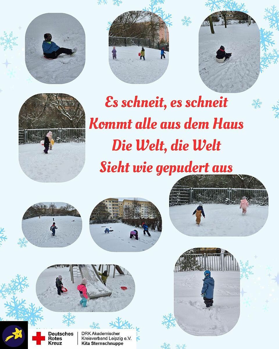 Endlich fiel im Januar der erste Schnee. Das nutzten die Kinder der Kifaz-Kita Sternschnuppe zum Rodeln und fürs Schneemann bauen. Das war für alle ein tolles Erlebnis.
